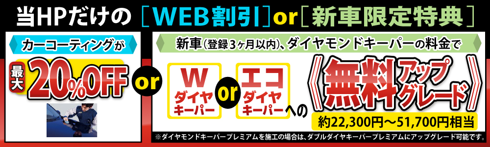 ※キーパー施工車限定 ※キーパーコーティングとの同時施工メニューではないため、WEB割引の対象外となります。